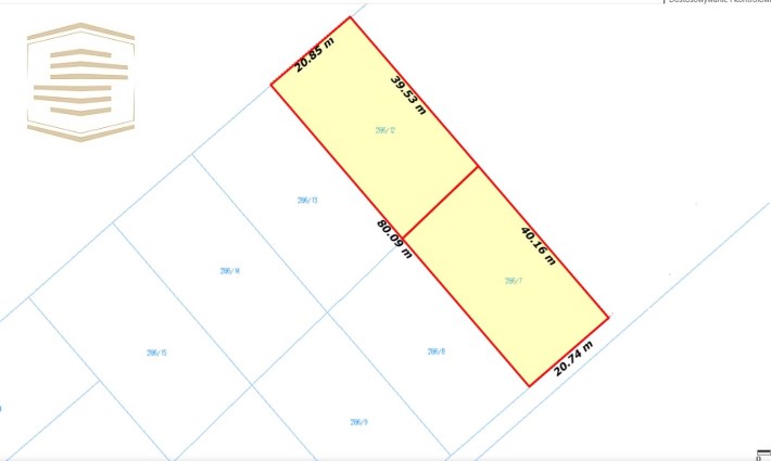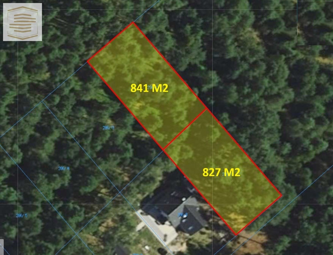 Nieruchomość o łącznej powierzchni 1668 m² składa się z dwóch sąsiadujących ze sobą działek (841m2 + 827m2).