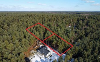 Teren całej nieruchomości w kształcie prostokąta o wymiarach ok. 20 m szerokości i 80 m długości, co daje szerokie możliwości zagospodarowania. Działka porośnięta jest drzewami iglastymi, z możliwością wycięcia ich pod zabudowę, zachowując resztę jako prywatny las.