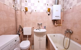 Ogrzewanie centralne z sieci miejskiej, ciepła woda z piecyka gazowego znajdującego się w łazience.