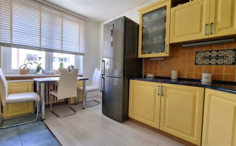 Mieszkanie znajduje się w dobrym stanie technicznym, czyste i zadbane. Na podłogach w pokojach położone panele, w kuchni i przedpokoju kafle. Na ścianach gładzie gipsowe, oraz tapety. Łazienka razem z WC, cała w kaflach. Wszystkie okna plastikowe. Drzwi wejściowe wymienione na antywłamaniowe. Kuchnia pod zabudową ze sprzętami AGD.