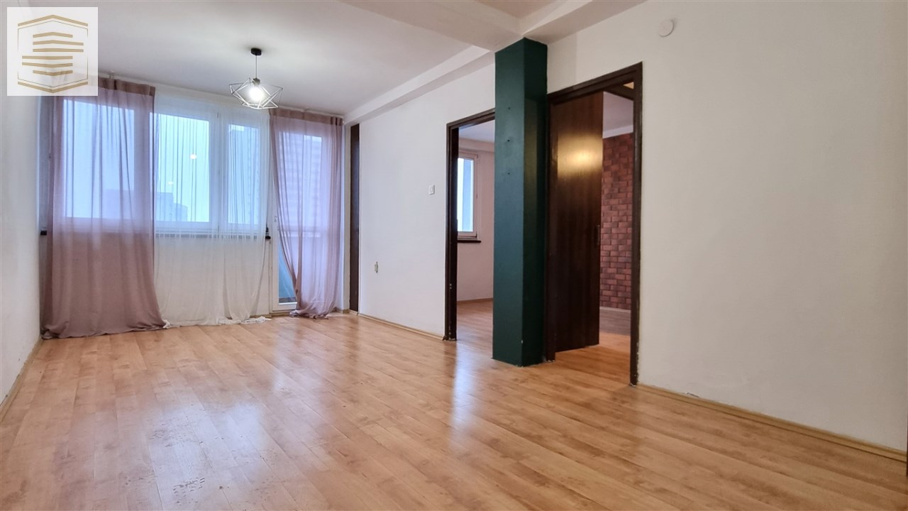 Mieszkanie usytuowane na 11 piętrze budynku (winda zatrzymuje się na 11 piętrze) o powierzchni 47,5m2 z zachodnią ekspozycją okien i balkonu, składa się z dwóch pokoi, ślepej kuchni, łazienki z wc, oddzielnej garderoby i przedpokoju. Istnieje możliwość połączenia kuchni i pokoju. Z balkonu rozpościera się piękny widok na panoramę Katowic.
