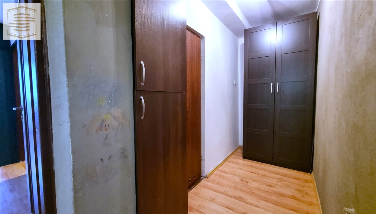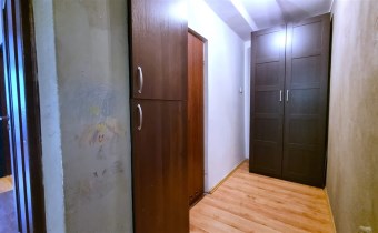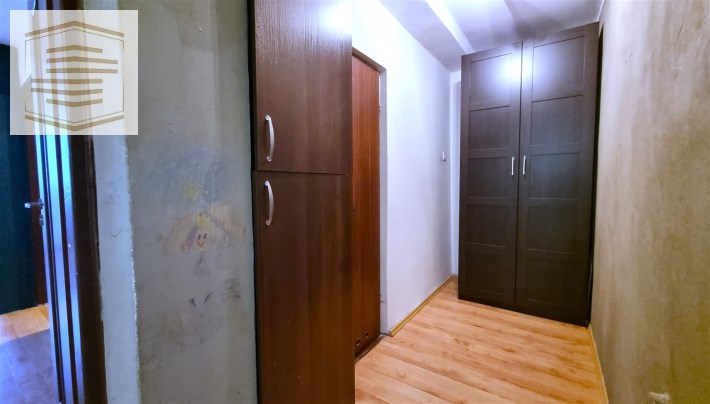 Stan mieszkania dobry, do odświeżenia. Na ścianach położone tynki, na podłogach w całym mieszkaniu położone panele. Łazienka razem z WC, cała w kaflach, na wyposażeniu z wanną. W przedpokoju znajduje się spora szafa.
