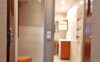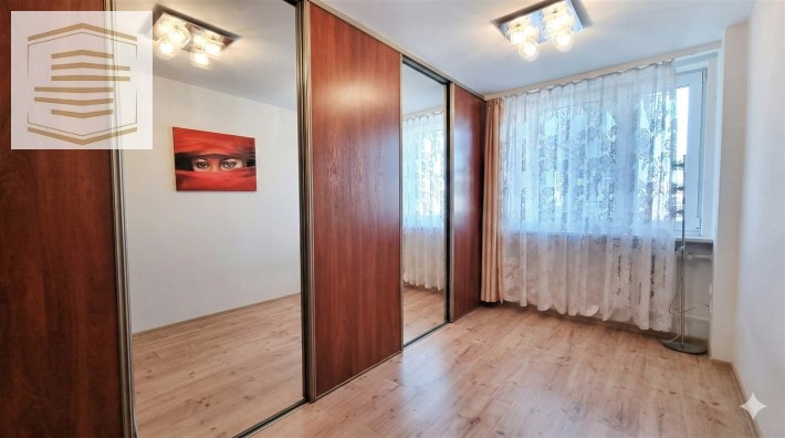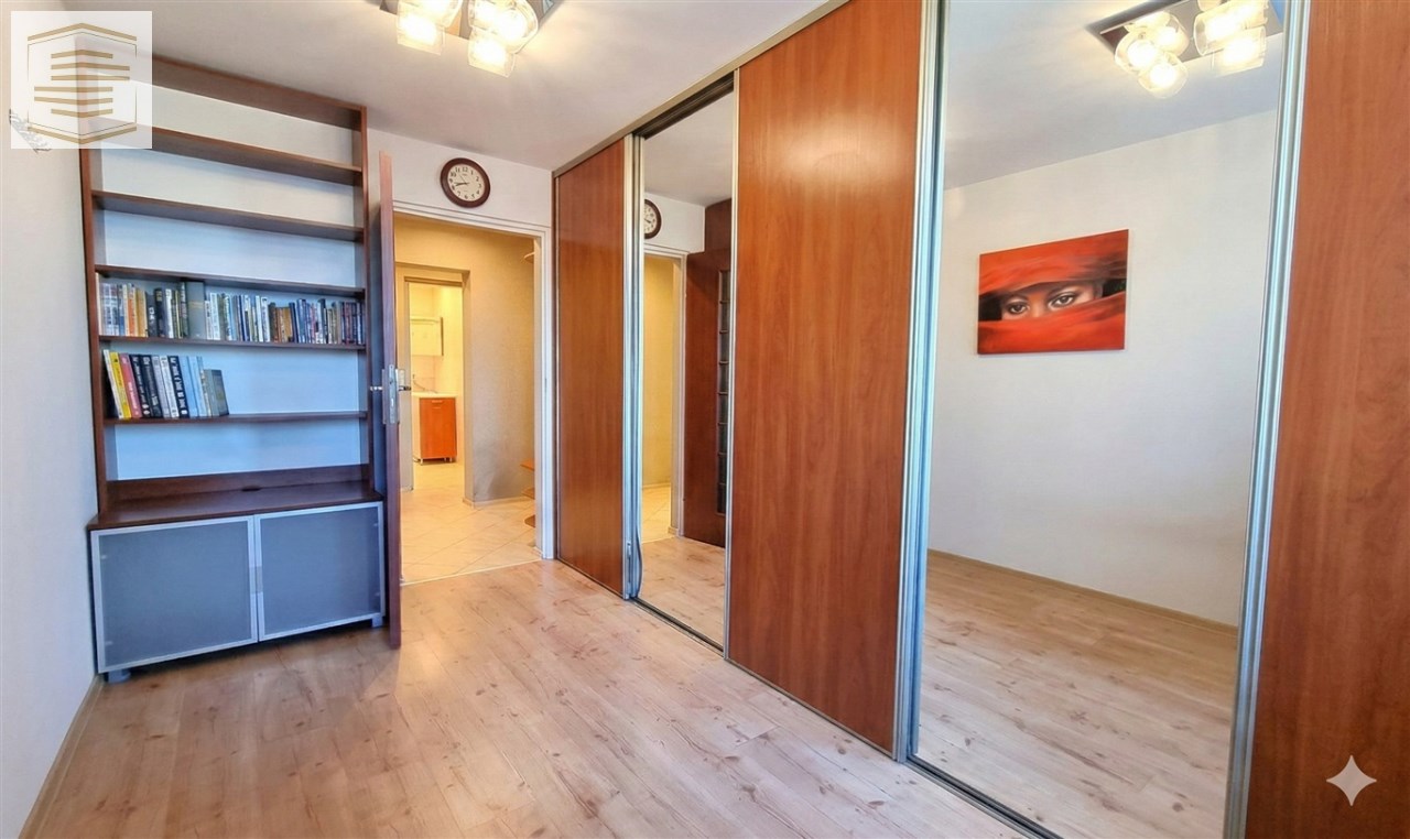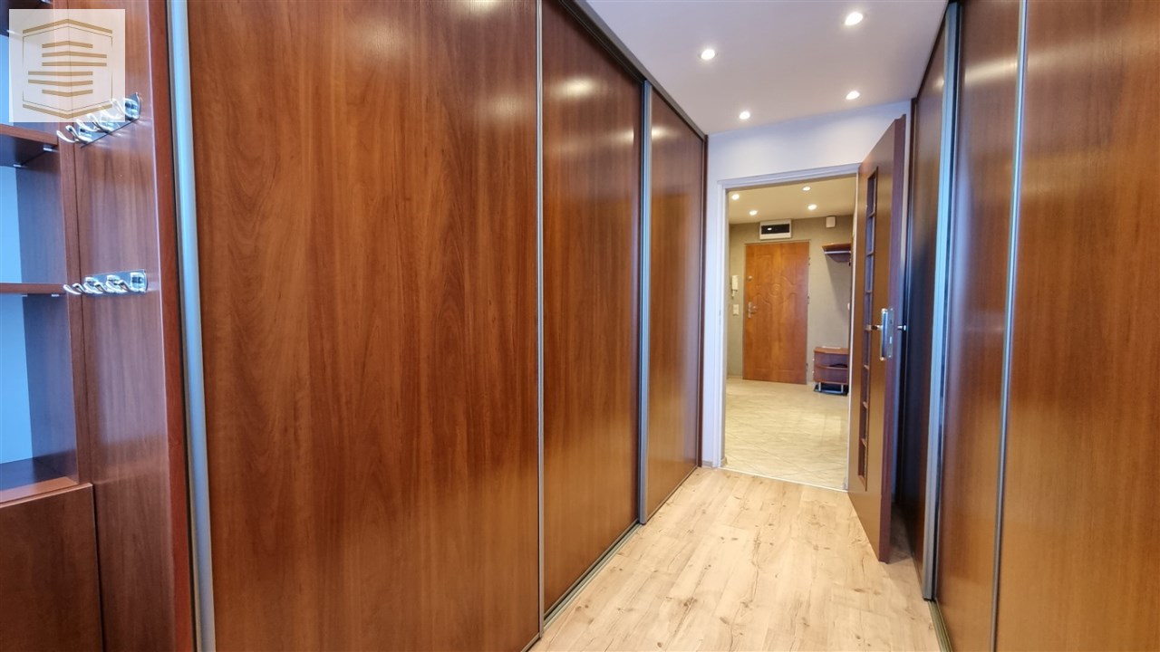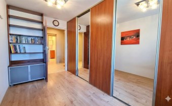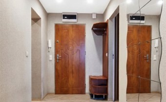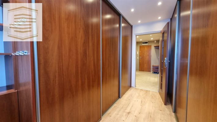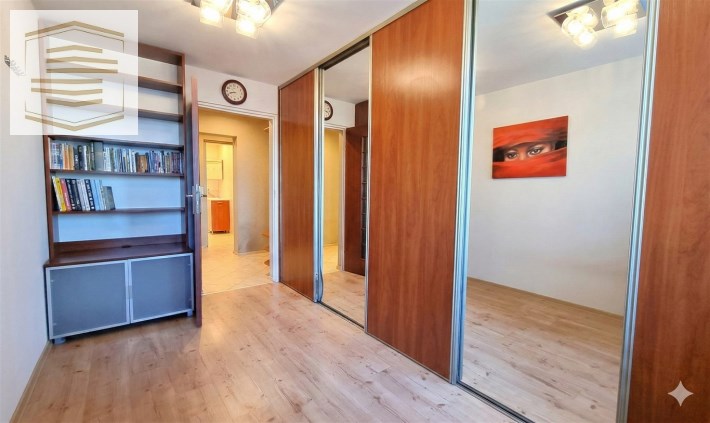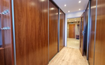 Atutem mieszkania jest bardzo dużo miejsca do przechowywania dzięki szafom w zabudowie znajdującym się w pokojach i przedpokoju.