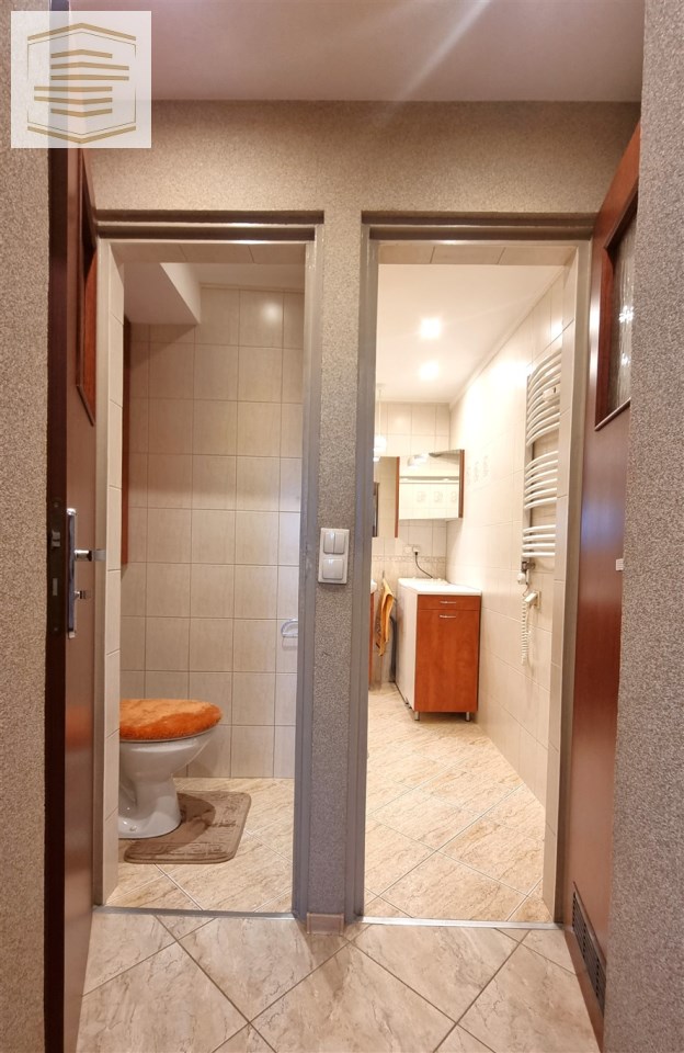 Łazienka oraz wc całe w glazurze.