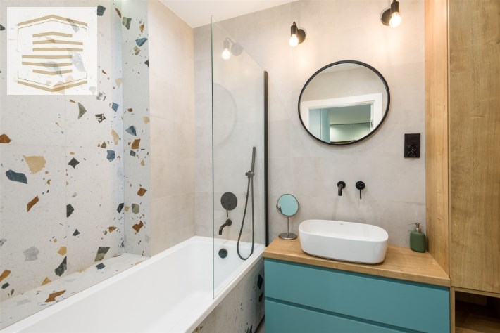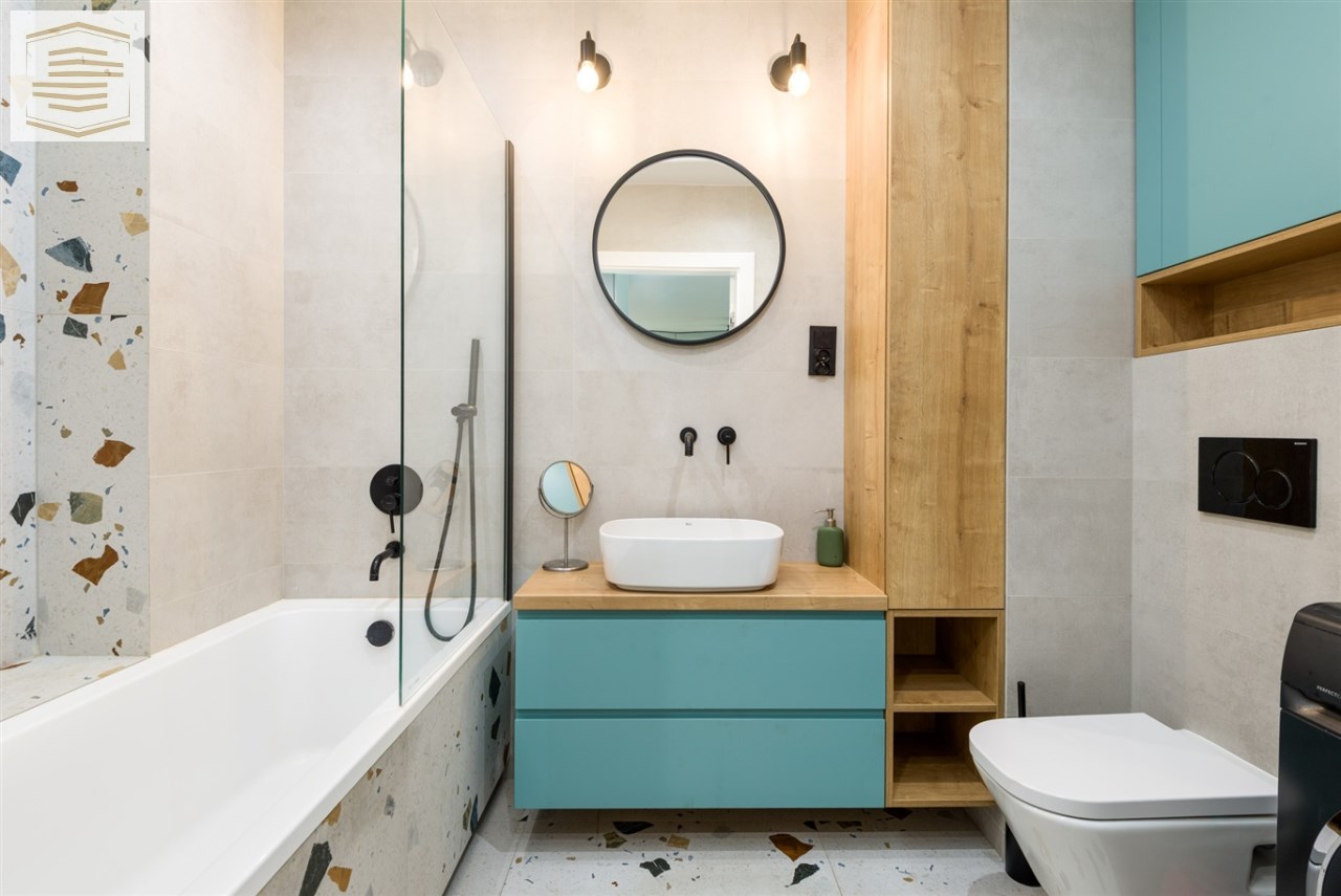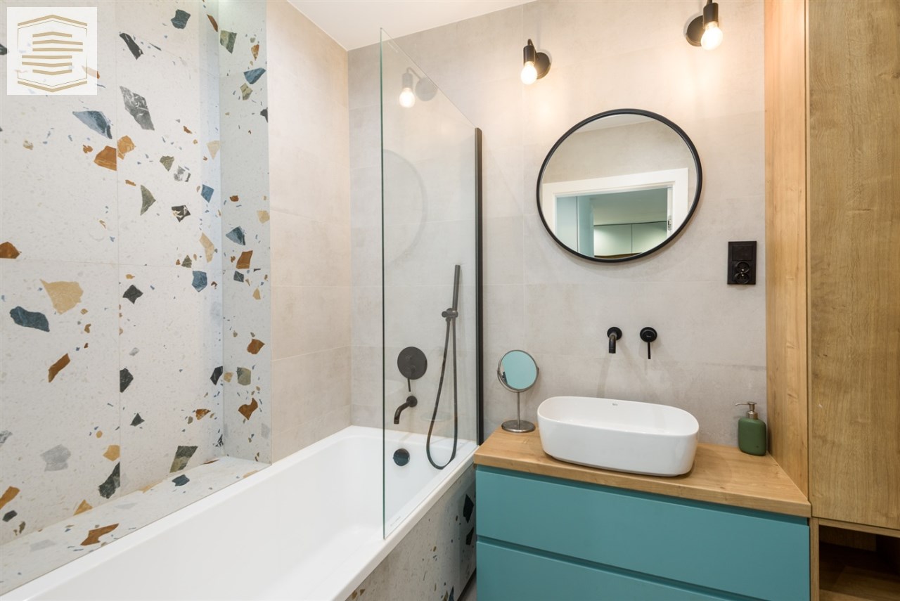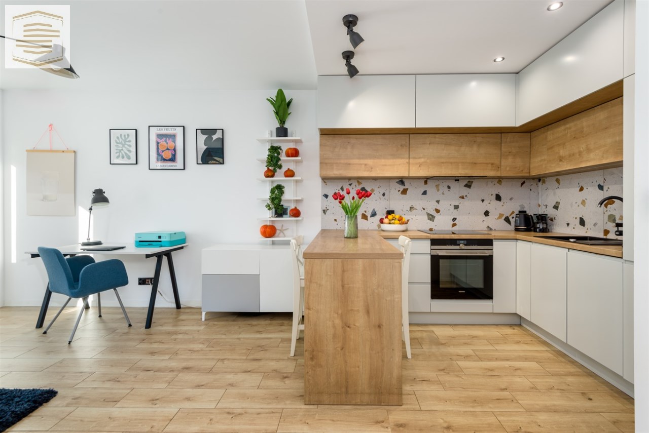 Mieszkanie znajduje się w bardzo dobrym stanie technicznym, gotowe do zamieszkania, wykończone w wysokim standardzie z zastosowaniem dobrej klasy materiałów. Zabudowa kuchenna i szafy w sypialni wykonane na wymiar. Kuchnia wyposażona w sprzęty AGD: lodówko-zamrażakra, piekarnik, płyta indukcyjna, okap, zmywarka. Na podłogach w salonie i przedpokoju położone gresy, w sypialni deska barlinecka. Łazienka cała w gresach na wyposażeniu z wanną. Na ścianach gładzie gipsowe.