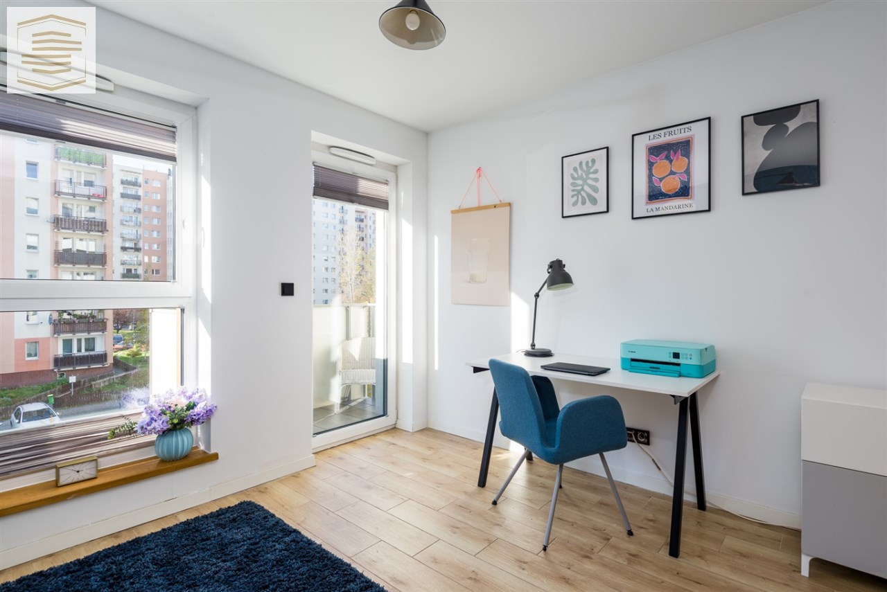 Jednym z największych atutów mieszkania jest jego lokalizacja, zaledwie kilka minut spacerem dzieli mieszkanie od ścieżek wokół Doliny Trzech Stawów, a szybki dojazd do centrum miasta oraz autostrady A4 zapewnia wygodną komunikację na co dzień. W najbliższym otoczeniu znajdują się sklepy (150m LIDL, 400m CH Trzy Stawy), przedszkola i szkoły.