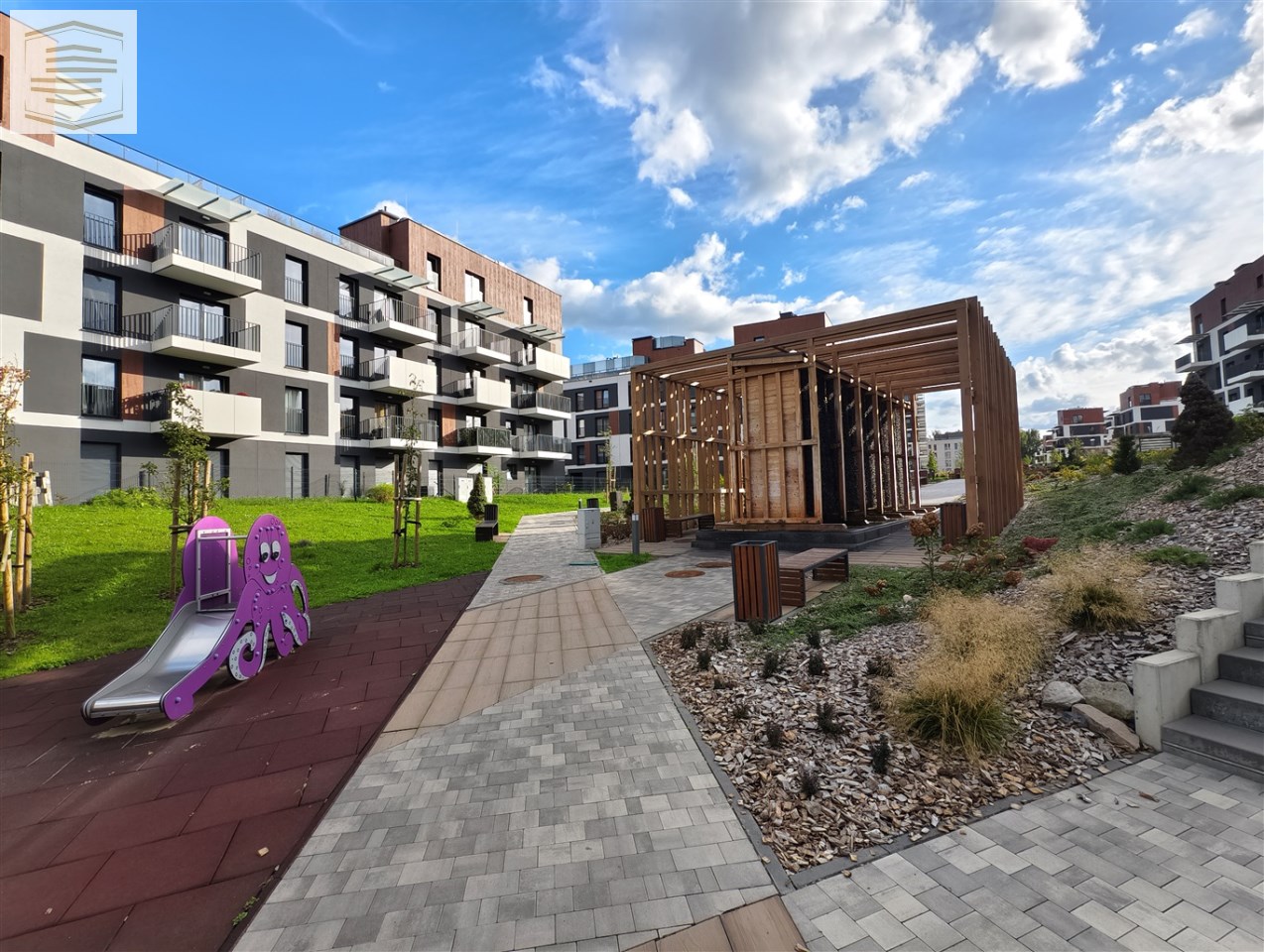 Budynek z 2024 z windą, pod budynkiem znajduje się hala garażowa z bramą na pilot. Do dyspozycji mieszkańców na parterze budynku znajduje się wózkownia