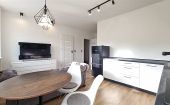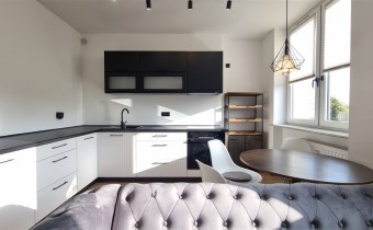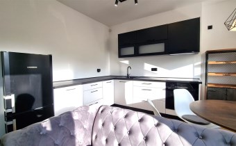 • Kuchnia pod nowoczesną zabudową, na wyposażeniu ze sprzętami AGD - lodówko-zamrażarka, piekarnik, płyta indukcyjna, okap, zmywarka. Wszystkie sprzęty AGD nowe i wysokiej klasy. (Bosh, Liebherr, Kernau).