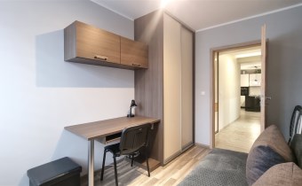 Całość wykończona w bardzo dobrym standardzie. Ogromnym atutem są liczne, pojemne szafy w zabudowie (w sypialni, drugim pokoju oraz przedpokoju), które pomieszczą wszystkie rzeczy bez zagracania przestrzeni.